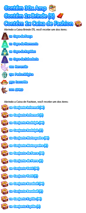 Pacote de Amp + Brinde (S) + Caixa Fashion